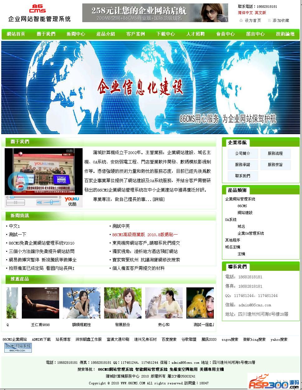 86CMS企业网站管理系统为智能ASP网站管理程序,适合中小企业自建网站、二次开发使用。本程序具有体积小巧、程序文件结构严谨、界面清爽简单、功能强大、非专业人士使用入门快、中小企业使用投资小等实用特点。
