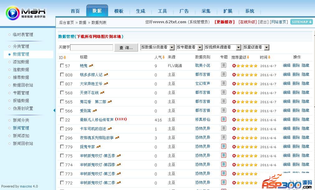 听书网源码采用MAX4.0内核,直接上传全部到空间,就可以用了。