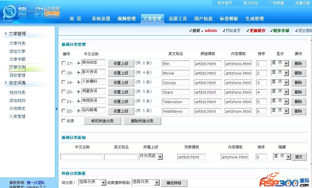 >>支持对连载影片、推荐影片、热门影片、隐藏影片进行单独批量管理!
