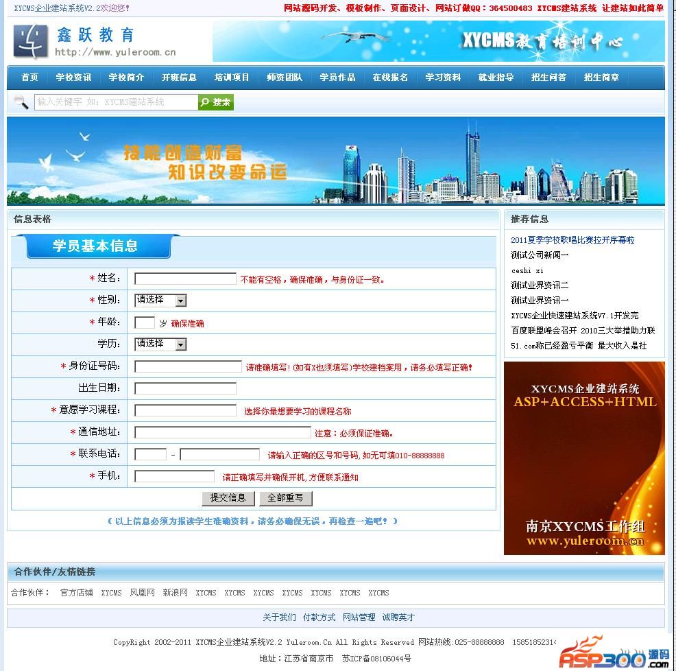 学校信息管理:包括基本信息管理,学员在线报名信息管理,问答中心信息管理