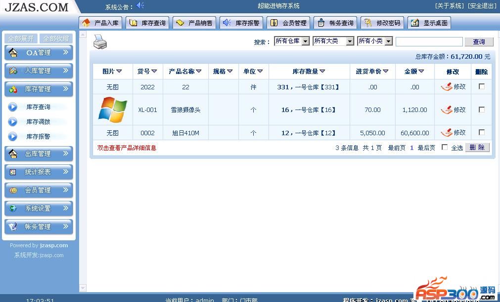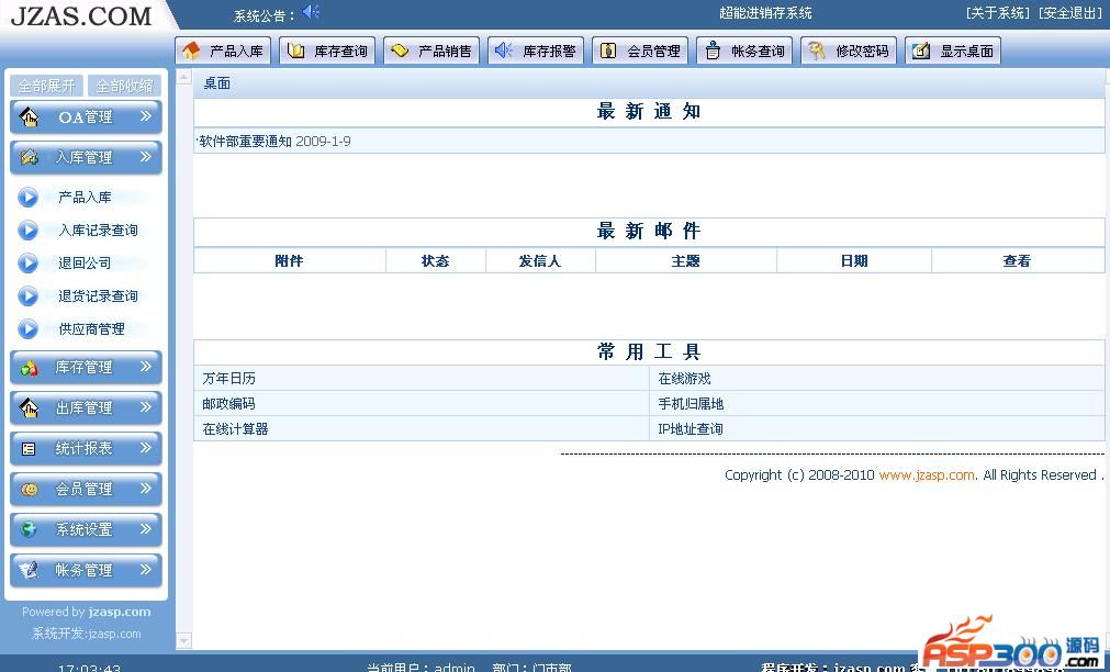 充分利用财务管理、进销存和企业电子商务系统, 整个系统主要由入库模块, 销售模块, 库存管理模块, 统计模块, 会员模块及帐务管理系统构成. 这些模块基本涵盖了各类企业对进销存管理软件的要求. 运行效率, 负载能力, 安全等级, 功能可操控性和权限严密性等方面都在原有的基础上, 更上一层楼.
