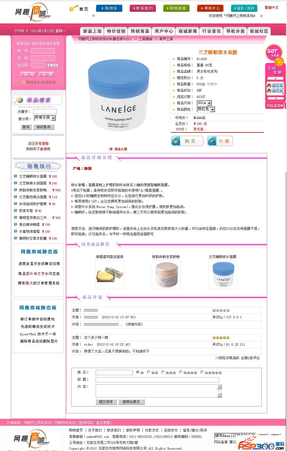 网趣网上购物系统HTML静态版 2012 介绍: