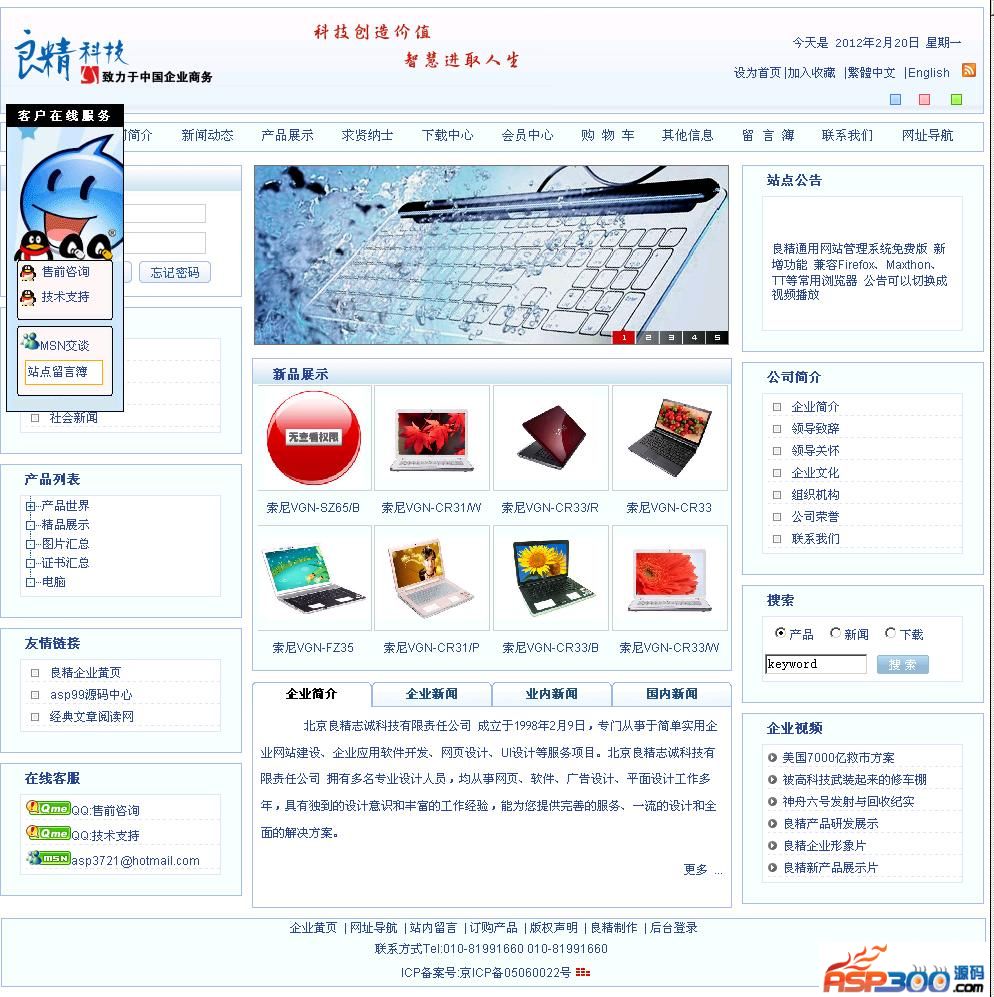 2. 新闻动态:发布企业新闻和业内资讯,从后台到前台真正实现无限级分类显示,并随意控制显示级数,大大增加信息发布的灵活性。