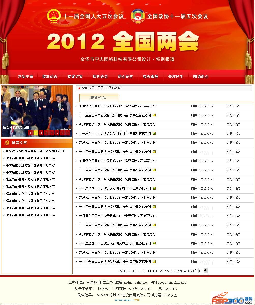 一套专为地方2012两会专题建站首选的信息网站管理系统,红色风格宽频页面十分大方。
