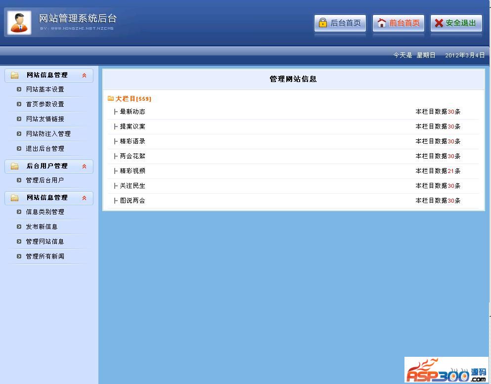 网站系统无复杂的安装设置要求,适合广大工作人员使用。特点:安全、稳定、美观、实用、易操作...。更多的优势功能,请参考官方演示站点。相关栏目:本站主页 最新动态 提案议案 精彩语录 两会花絮 精彩视频 关注民生 图说两会 等等...
