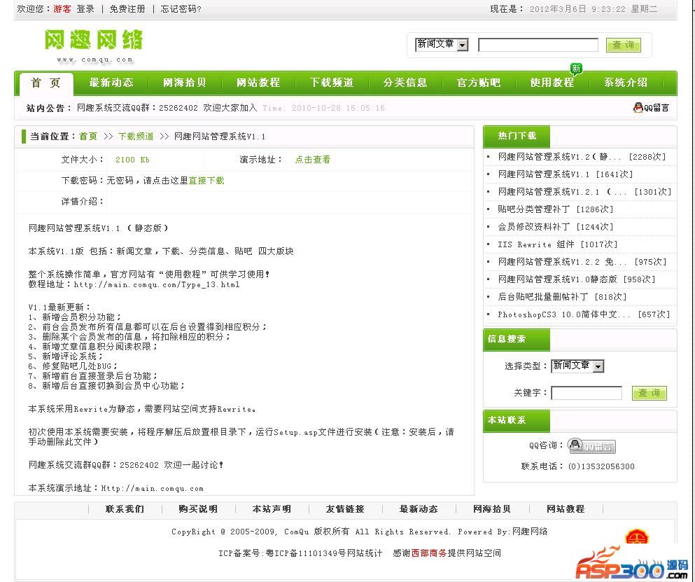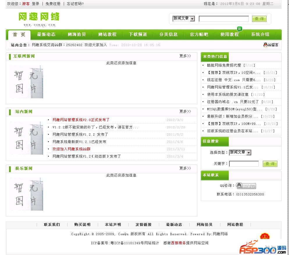 网趣网站管理系统V3.0功能:文章资讯、专题、下载、分类信息、贴吧以上所有功能免费开源,无加密、无限制。版本要求:服务器必须支持Jmail