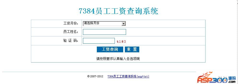 asp+txt 员工工资查询系统 V1.8这是个最简单却又最非常实用的查询系统。V1.8 优势它只有几kb大小,方便有能力修改的人快速修改为适合自己的查询。它几乎都由你的txt文本数据库控制,只要维护好你的excel表格然后复制到文本文件然后更名即可。它灵活支持多月多次,多列多项目,而且各项目名称都可以由txt数据库控制。它可以灵活运用到你的员工工资查询,工资查询,物业费查询,证书查询等地方。它比excel数据库还通用,excel的各个版本,wps表格,access数据库都可以快速转换。它比excel的查询速度还快,他还比excel多一个绝对的优势,就是防止下载。V1.8 说明解决部分用户不支持Response.Addheader而中文结果乱码问题。操作界面比原来1.0更美观,结果使用table表格显示。自动根据数据库名识别你的查询选项,让系统自动支持多月查询。灵活支持2,3,4,...N列数据,你的excel文件是几列的,那就自动读取几列数据。各项的标题(列头)由你的excel文件控制,无需改变程序的代码。输入了后才可以提交查询,否则动态提示,体验效果很好。查询结果独立页面显示,并有打印按钮以及返回按钮。验证码验证,防止员工工资信息及隐私被用列举的方法查询。V1.8 操作打开excel或者wps表格或者access文件,选取数据范围,然后复制。新建空白文本文件,粘贴,保存,更名(选项名称),改后缀(.dat)。将新的文件用你常用的上传手段上传至网站数据库目录下。注意原来表格的单元格内有回车换行会对查询有影响,请先替换。