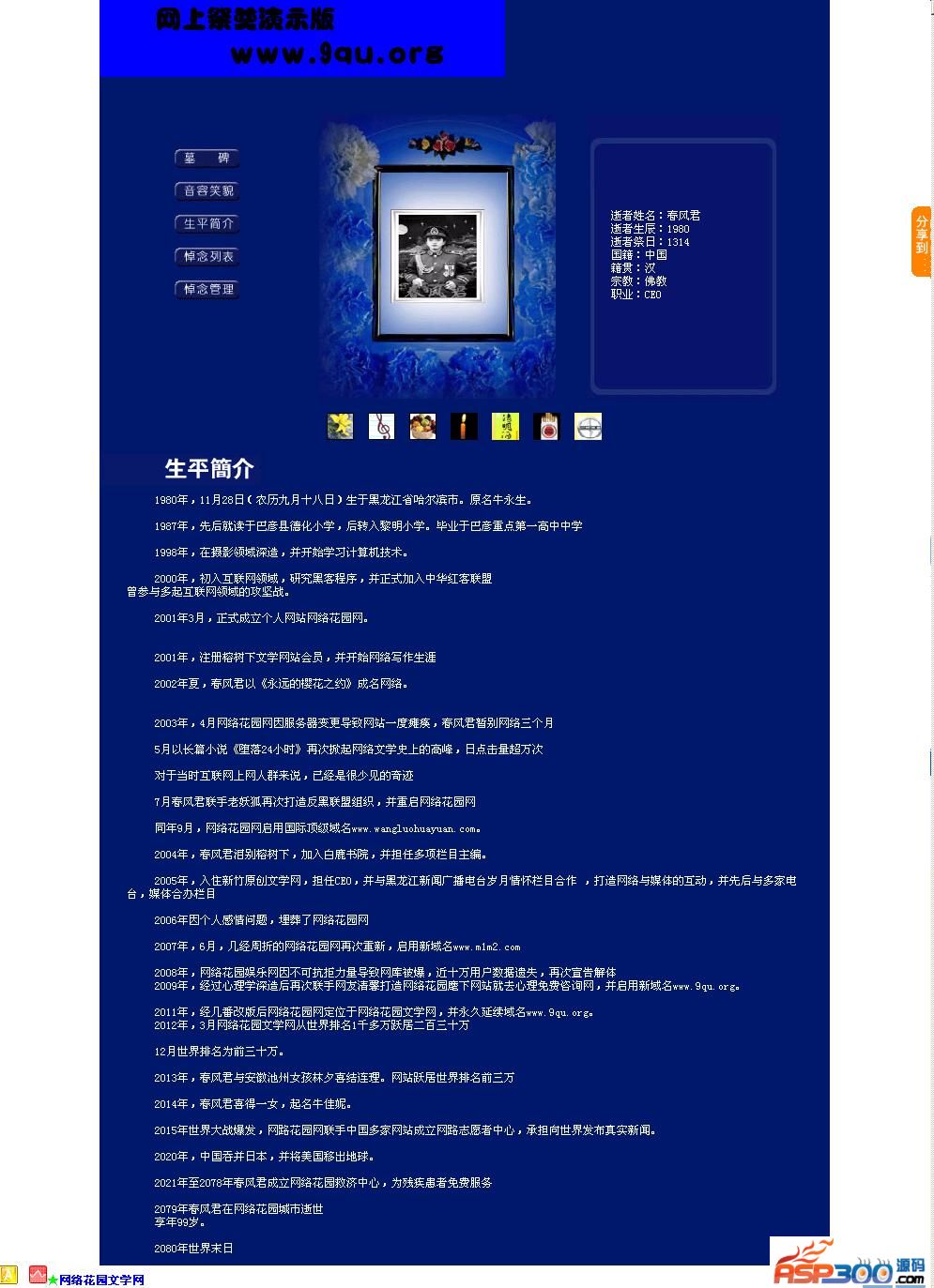 本程序是基于网墓程序(单用户版)修改而成,在原有基础上完善了部分程序错误,图片无法显示等,并新增了为亲人献烟,酒,名车等功能,主要针对男性。