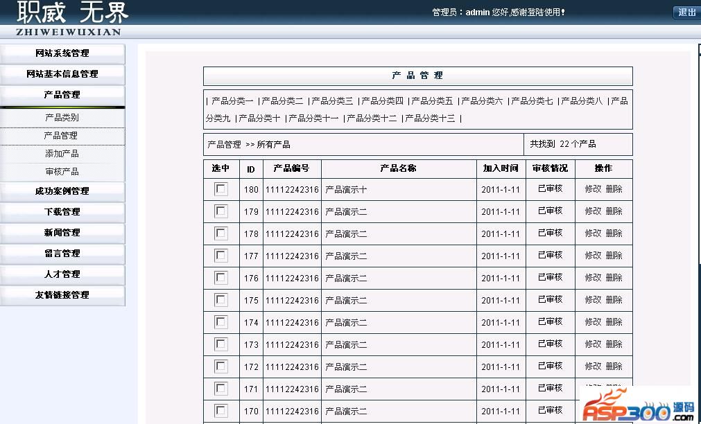 产品管理:可实现二级分类,不同的大类下边套用不同的小类。"