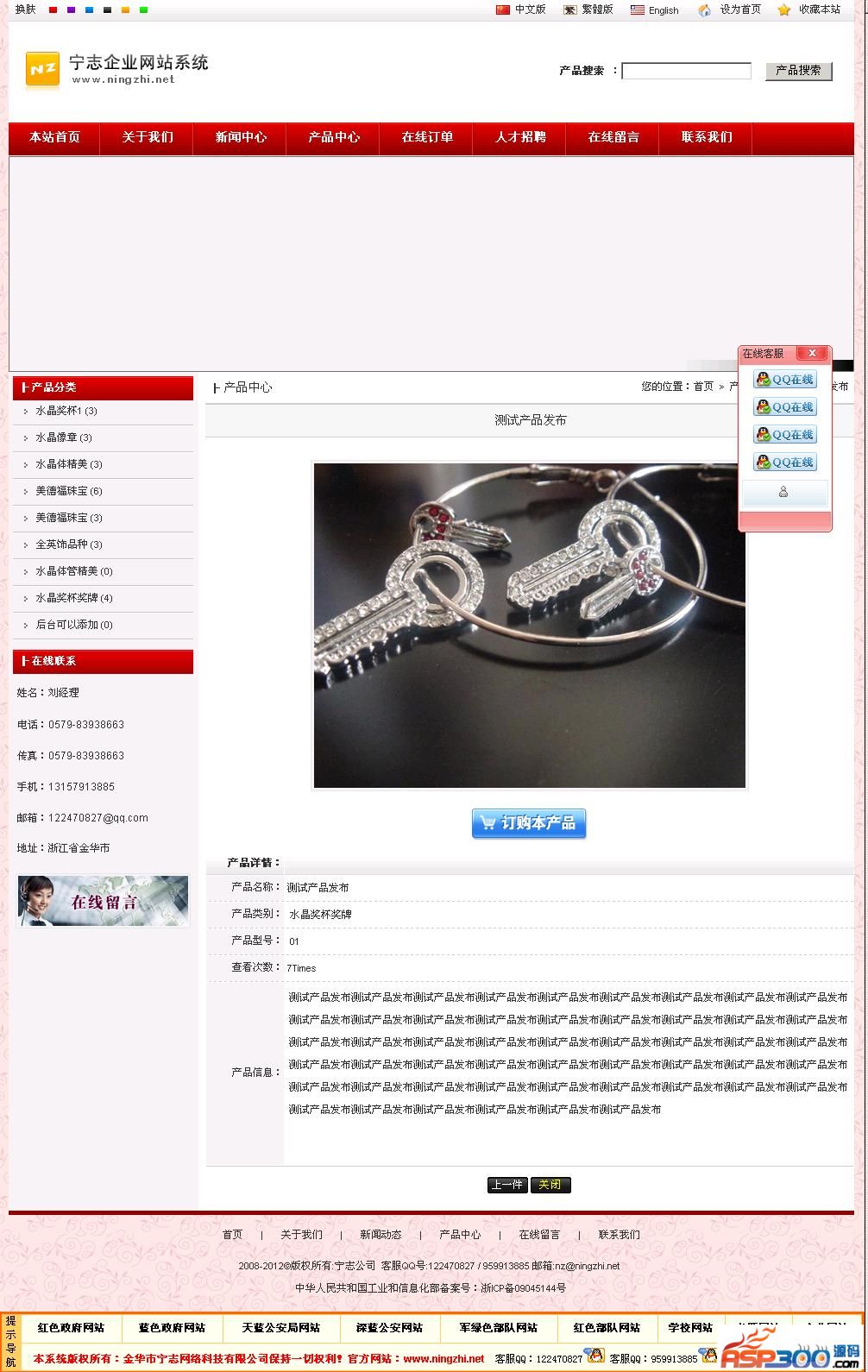 管理产品信息:可按产品类别,进行产品管理,包括修改产品信息,是否推荐产品,是否在外网显示产品