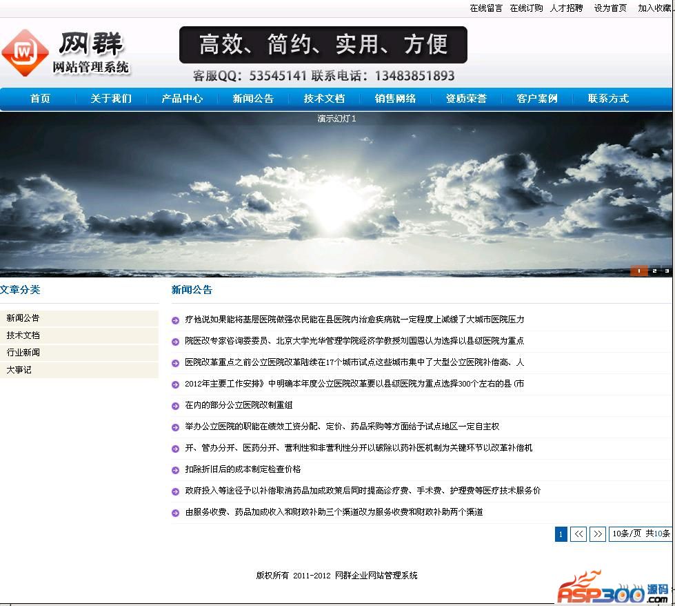 幻灯管理:支持文字、链接、不限制个数可以排序。
