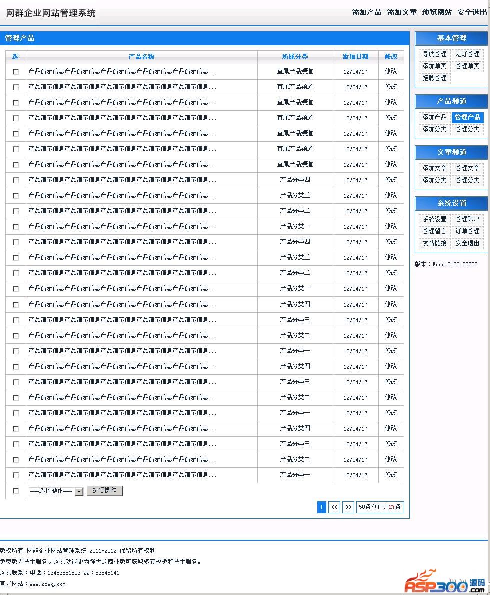 单页管理:不限制个数,支持简短和详细内容,支持排序。