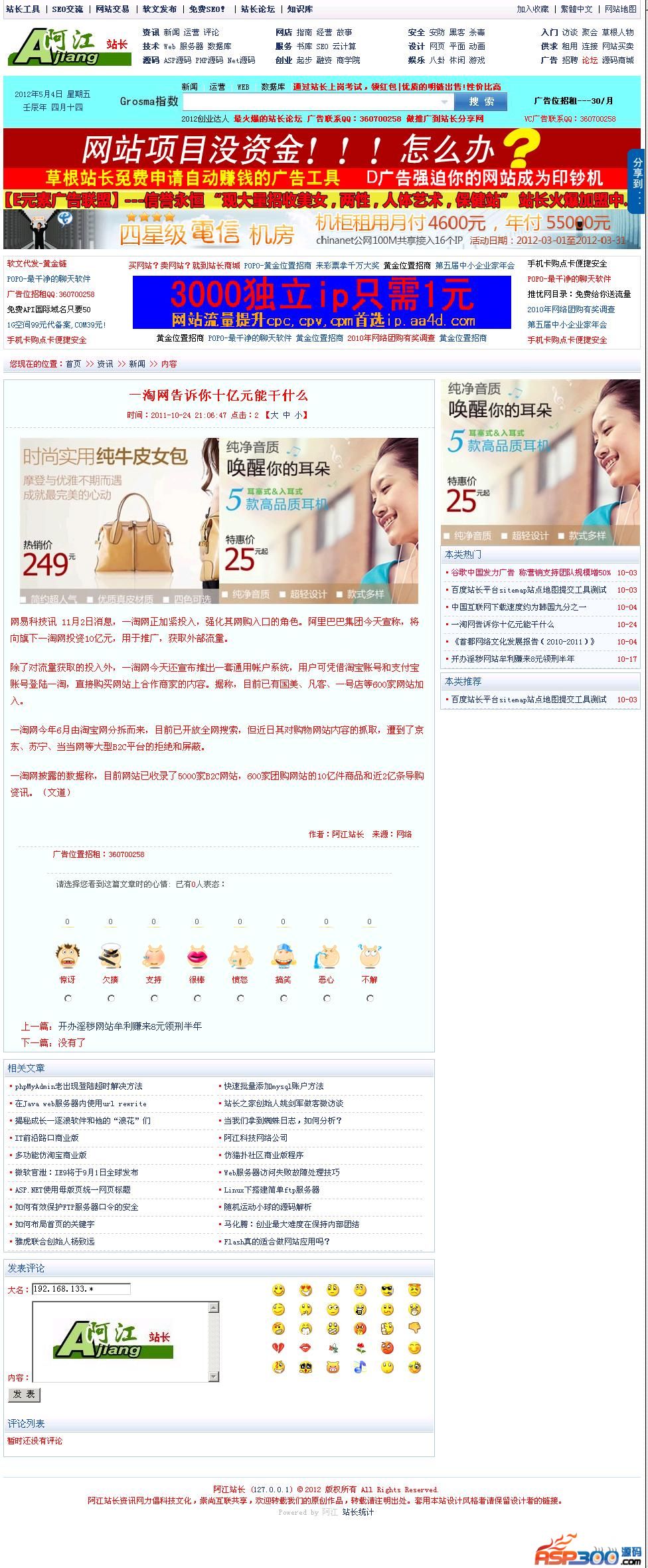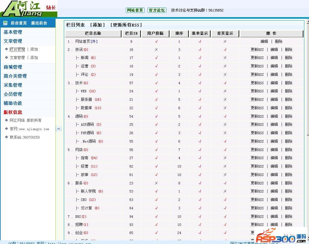 阿江文章管理系统基于老Y文章管理系统进行的二次开发,在其基础上改进了一些功能,并陆续会增加新的功能和特色,目的是更好让站长使用,在老Y基础上,增加了全站静态功能,让搜索引擎更好的收录及让网站速度更快!