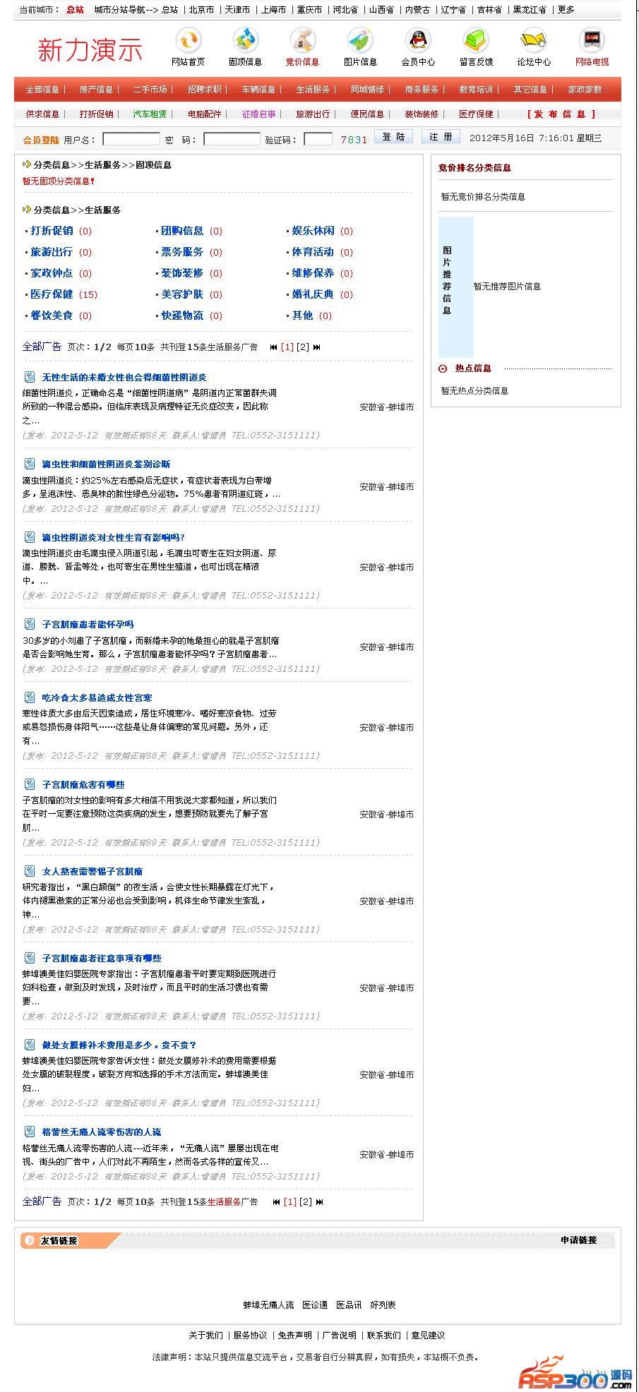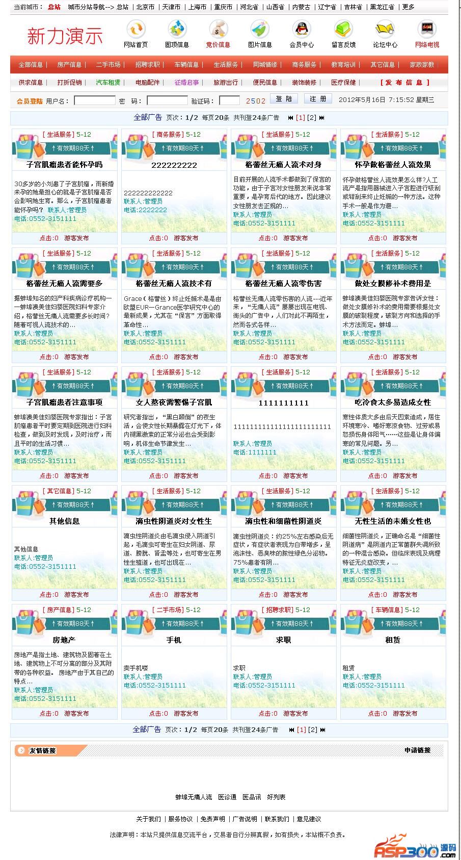 (1)分类信息:增加信息/修改信息/查看信息(发布信息/未审信息/全部信息/首页显示/付费信息/固顶信息/热点信息/过期信息/一键删除过期信息/多选删除信息)