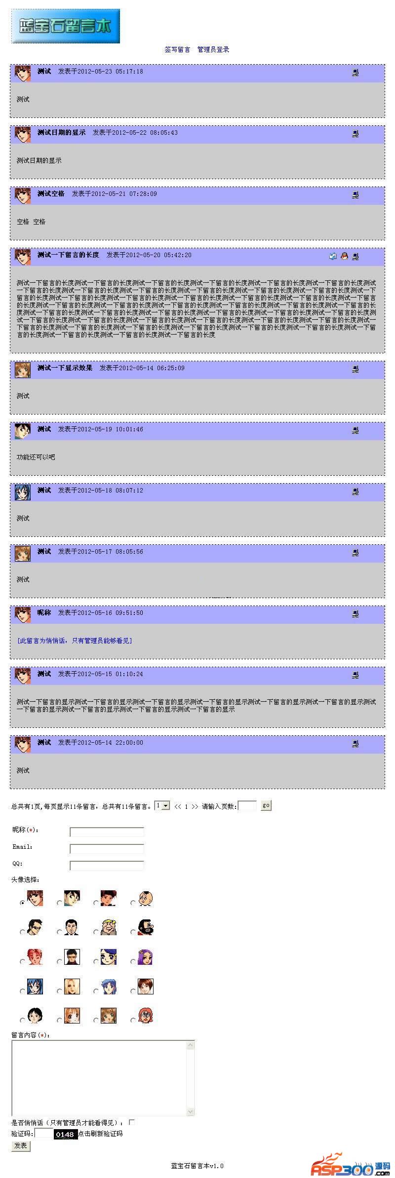蓝宝石留言本asp版经过ie6和以上版本,firefox,chroma,opera,safari兼容性的测试,均成功通过。