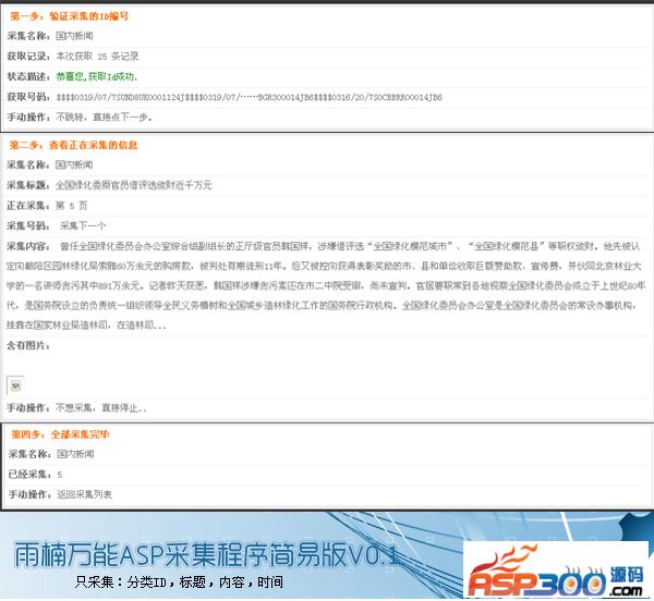 雨楠万能ASP采集程序简易版V0.1功能 1.可以采集类型、标题、内容、时间 2.自行配置 3.可以整合到你自己的程序里 下载地址 下载地址已转移到新版网站,请点击左上角-首页,在新版网站搜索此套源码的标题进行下载。