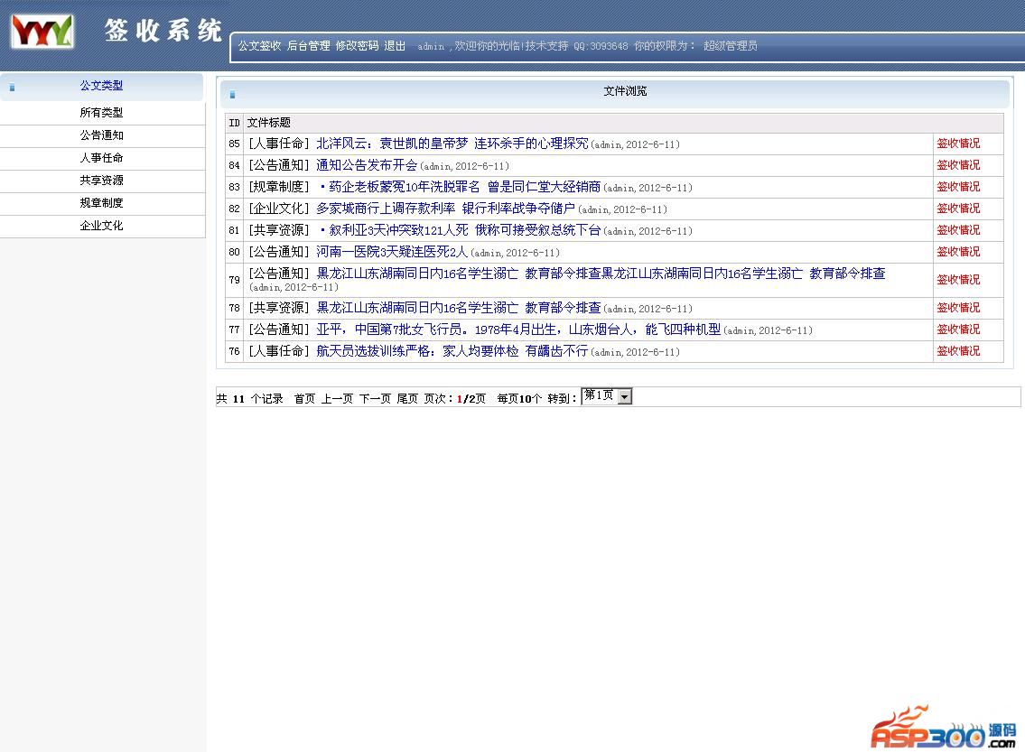 公文签收情况管理:
