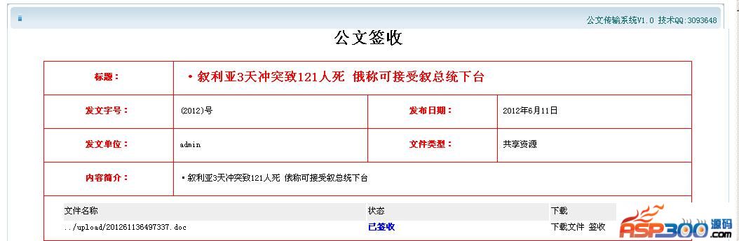 对其它单位的来文,未签收的文件系统都有标识提示,可打开文件进行签收,下载打印。对本单位的发布的文件随时监控接收单位签收文件的情况报表,包括未签收单位、已签收单位,签收时间等。