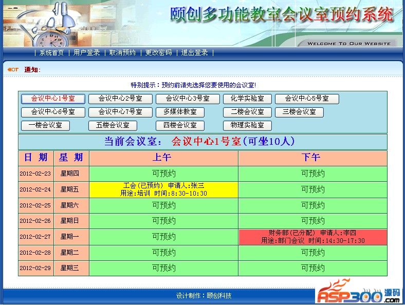 教室会议室预约预定系统V2.0修改了之前发布的1.0版本的BUG.