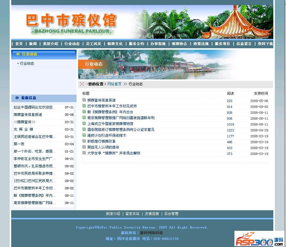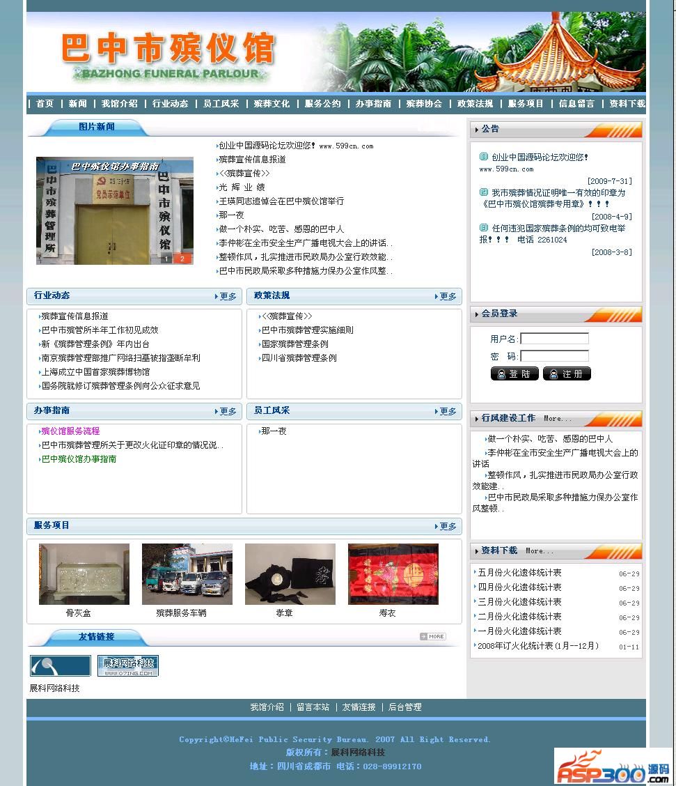 vfre殡仪馆网站管理系统,后台功能包括:系统管理、新闻管理、员工资料维护、友情链接、留言管理等。