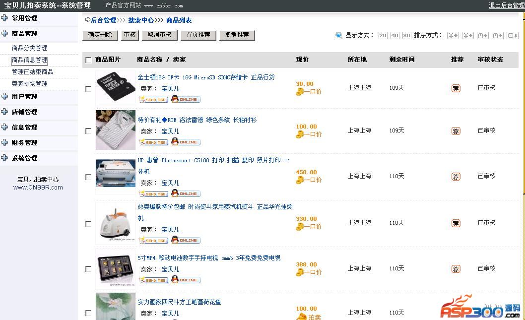 宝贝儿拍卖系统BBRv10.4版主要功能列表