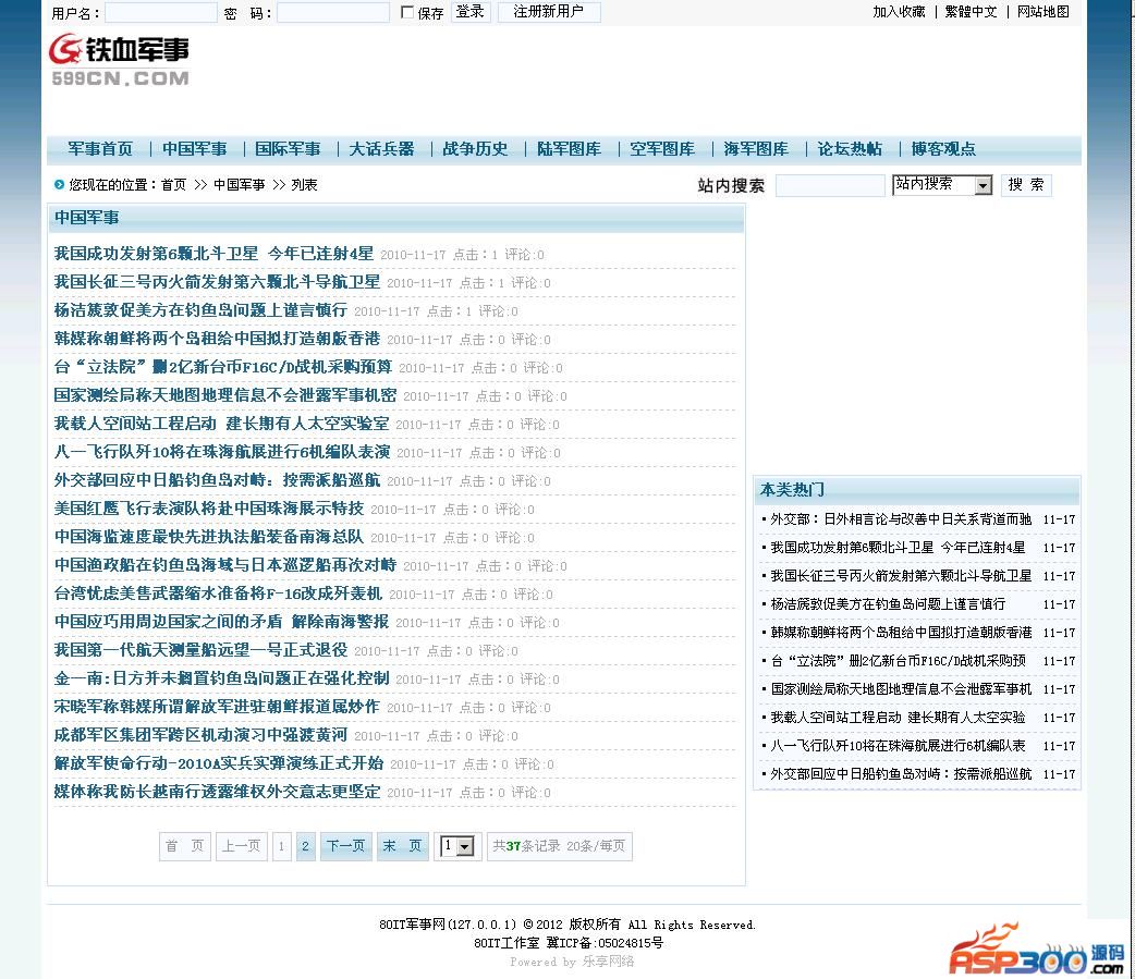 铁血军事网整站源码,免费完整可用,带数据采集规则,适合想搭建军事网站的站长们!不多说,好东西,就要分享! 下载地址 下载地址已转移到新版网站,请点击左上角-首页,在新版网站搜索此套源码的标题进行下载。
