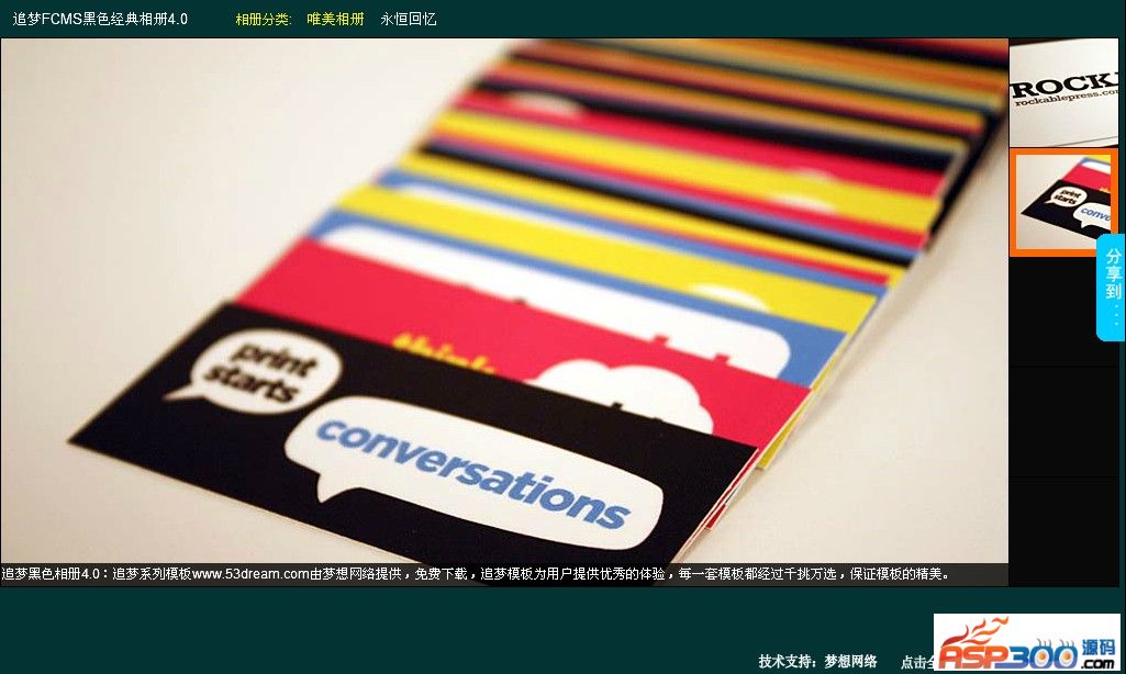 版本说明:追梦黑色经典flash相册4.0,这是一款全新的黑色系相册,感谢冰封的冢用户提供源码,此款相册拥有多格略缩图展示,并添加了鼠标特效,支持相册分类,图片说明以及高清展示。通过后台登录可以轻松的相册添加图片和说明,无组件上传,不支持高清数码图片,图片展示速度取决于网速。