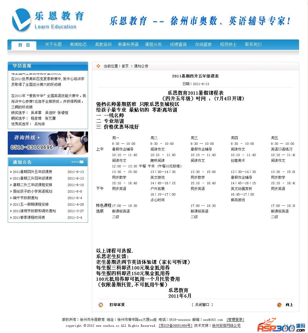 奥数英语培训学校网站系统v1.2是专为奥数英语培训学校网站管理系统,绿色风格、清新时尚,适合小学阶段教育培训机构使用,网站采用ASP语言+ACCESS数据库开发,主要功能有机构简介、新闻动态、课程介绍、成绩查询、在线留言、在线报名、招聘信息等。