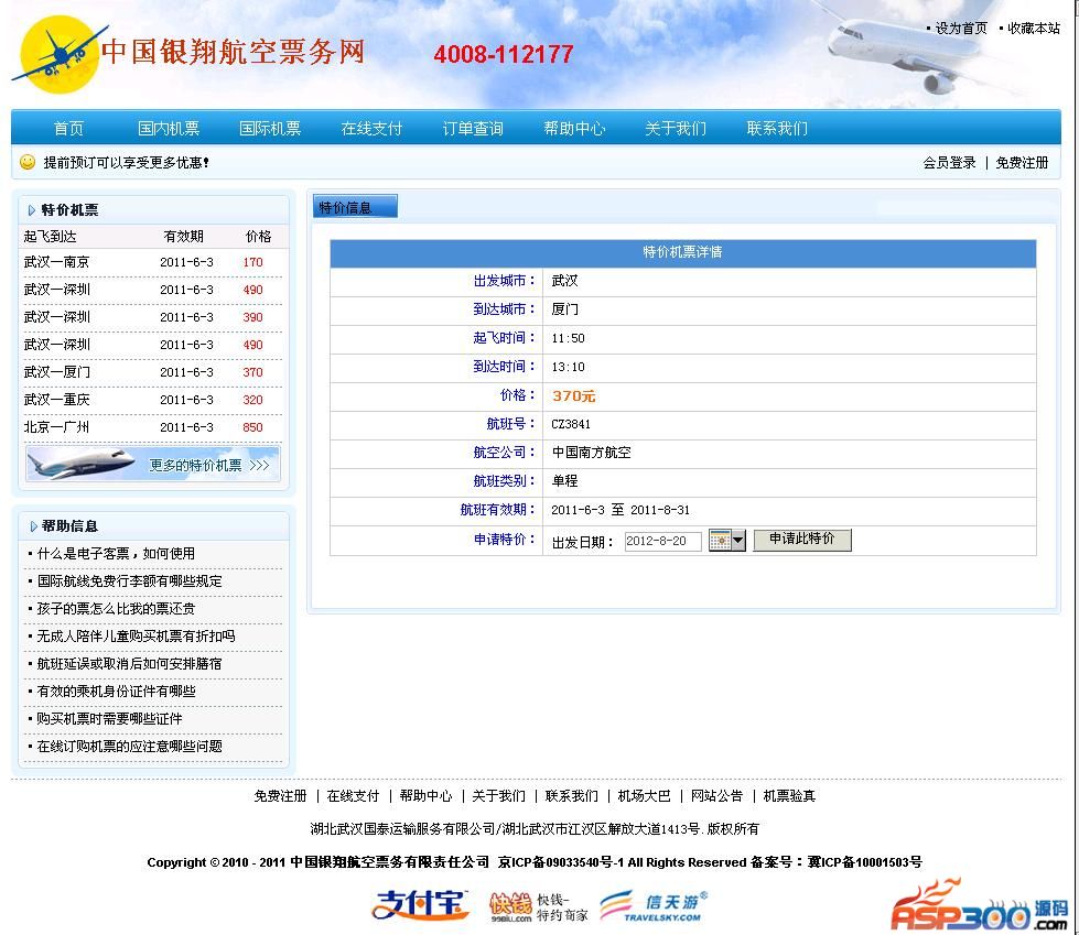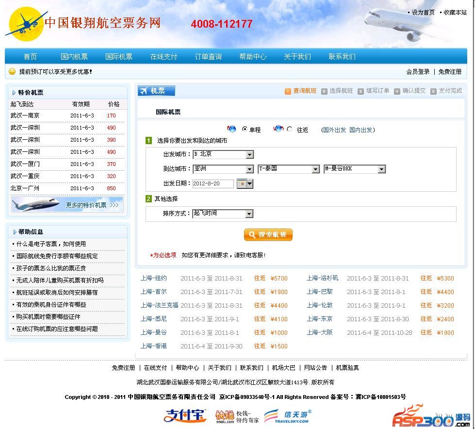 机票网站程序 包含机票查询功能 在线定单功能 短信发送功能 公司介绍 联系我们 新闻动态 功能强大 注:程序无机票查询接口,不能进行机票查询。 下载地址 下载地址已转移到新版网站,请点击左上角-首页,在新版网站搜索此套源码的标题进行下载。