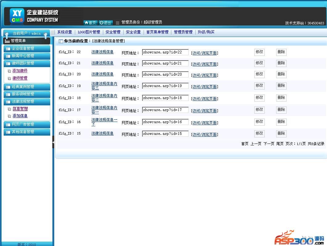 LOGO/形象图片管理:首页LOGO管理,可以设置长宽大小,可以上传分页形象图片