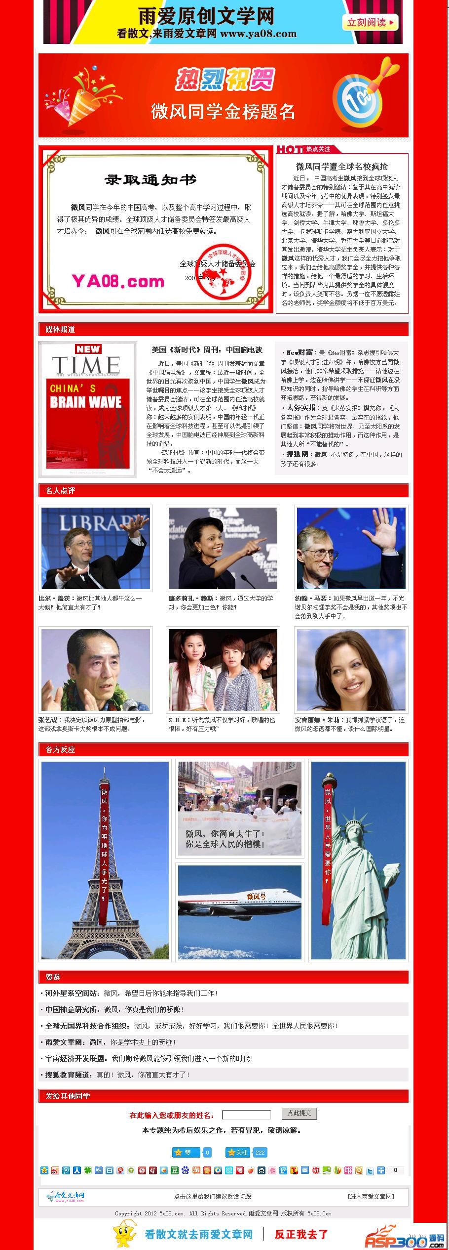 名字就可以自动生成一个完美的个人大学录取通知书专题,让他朋友高兴一下,雨爱