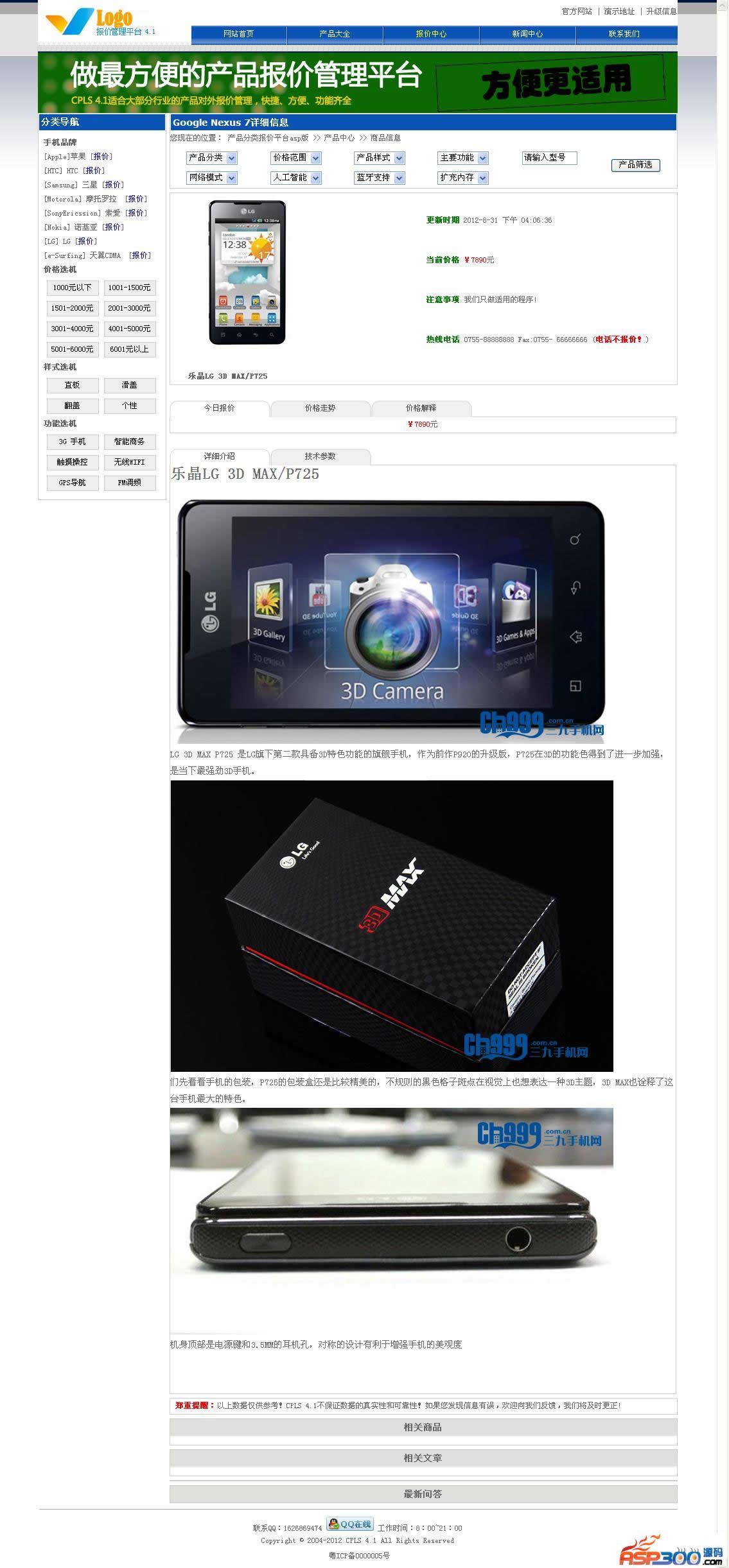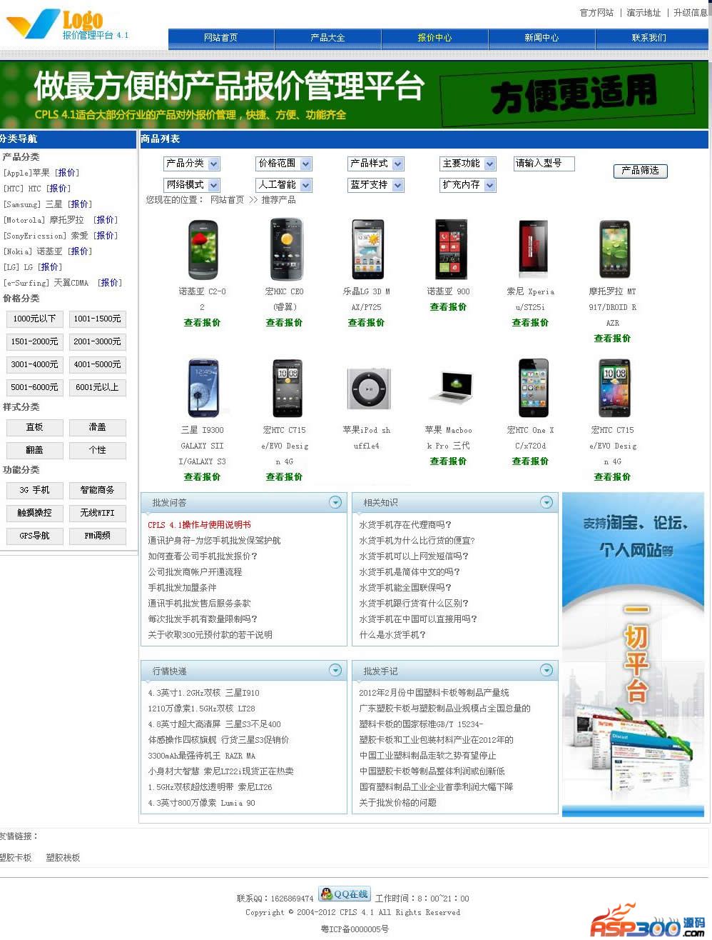 Cpls 4.1是一套适合于手机,通讯,电子,电脑,配件等多行业的对外产品报价平台,她以简洁的页面和较为完善的拓展功能而实现不同行业对报价系统的选择.