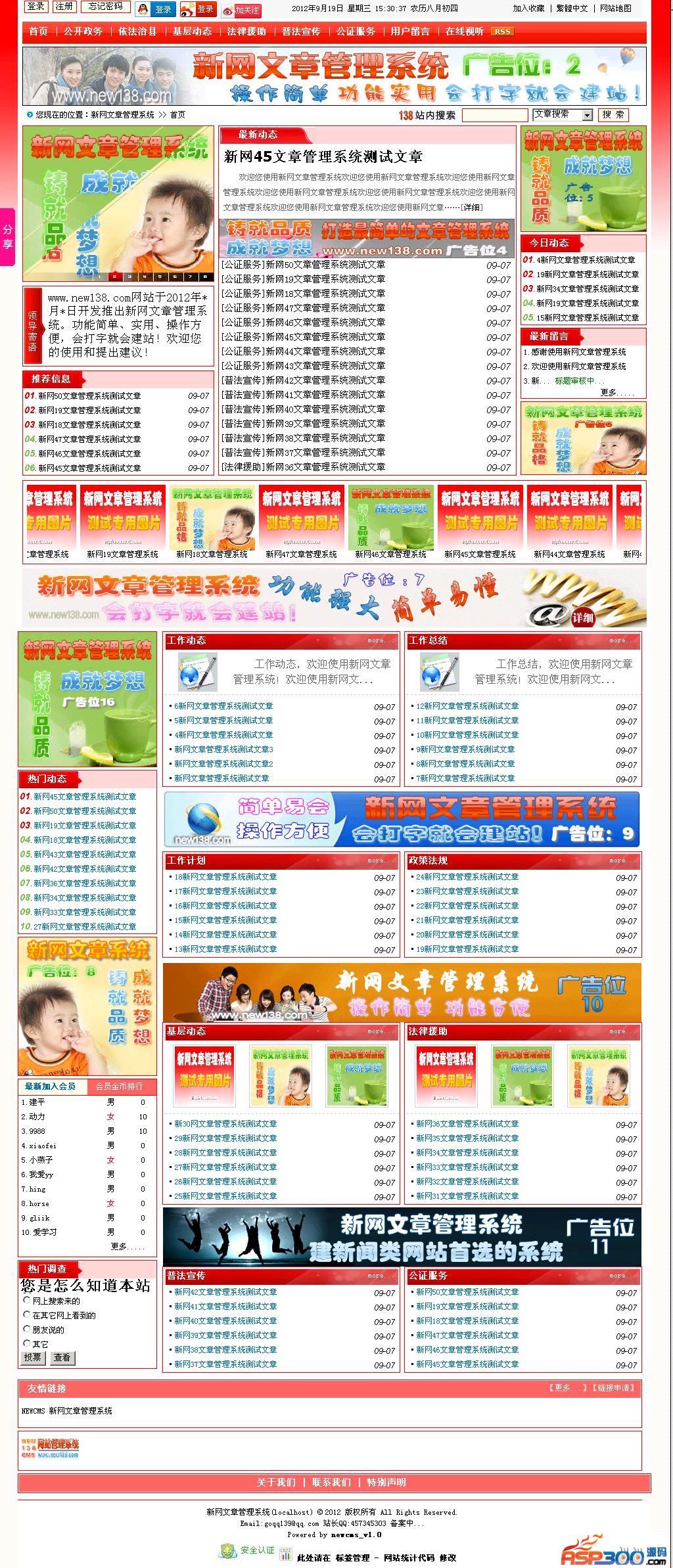 4、商业版首页(在后台网站配置设置):左上角幻灯显示图片、左上角推荐信息、最新动态栏头条、新动态栏最新文章、今日动态栏、最新帖子/留言/信箱栏目等均可设置显示条数和关闭,而免费版有些不能关闭。