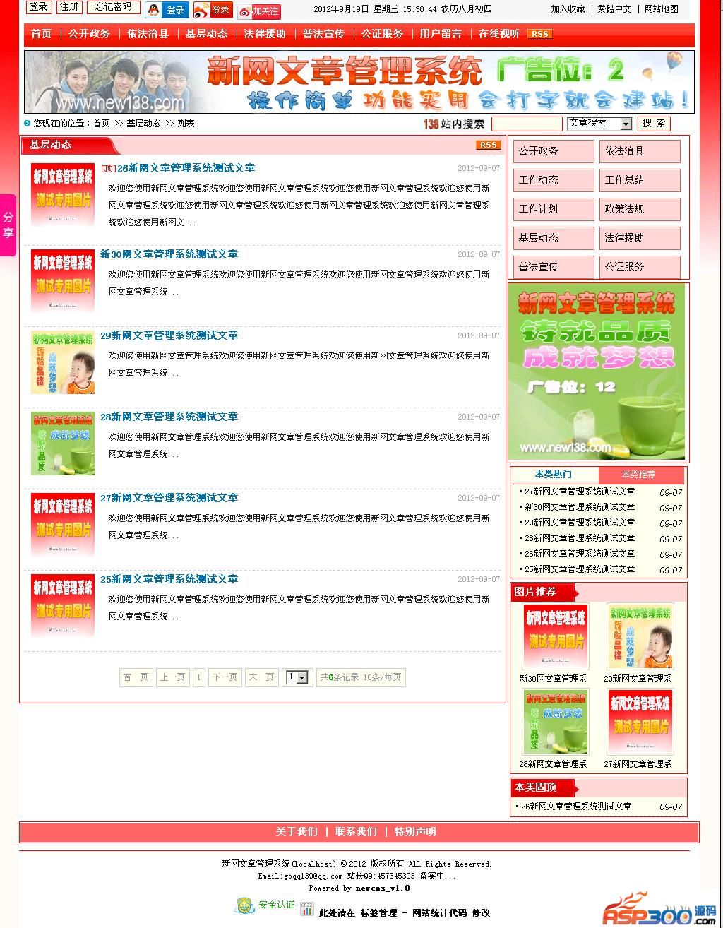 新网文章管理系统newcms采用Asp+Access开发,适应中小新闻文章类型网站及个人网站需求,整个网站采用Div+Css布局,IE6、IE7、IE8、Chrome、QQ、傲游、Opera、搜狗、百度、360、猎豹浏览器、等浏览器下测试无误,且兼容性良好!后台管理灵活排版前台页面,广告位设置在相关位置,可放广告也可做扩展您所需的一些栏目,应用灵活,个性DIY!