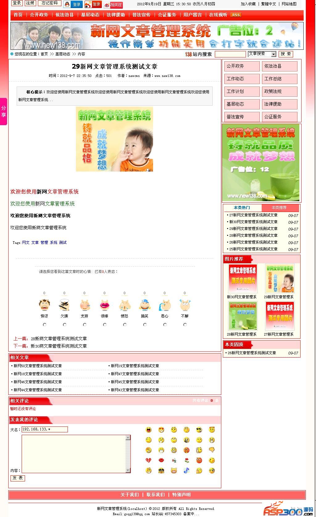 10.文章列表摘要控制、文章内容自动分页、文章页心情投票、文章列表每页显示条数设置、文章自定义关键字及描述、文章及栏目查看权限。