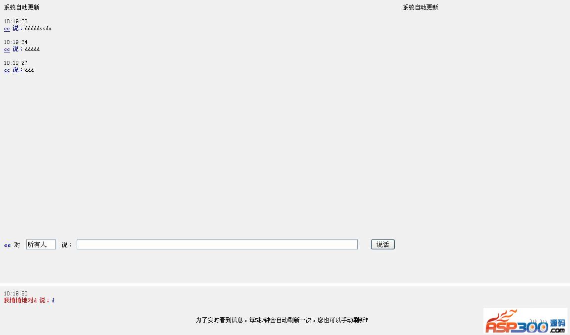随风多人聊天室 1.1 更新内容: 1修正聊天室,储存方式,为SESSION存储,效率更高 2支持100在线,不卡! 下载地址 下载地址已转移到新版网站,请点击左上角-首页,在新版网站搜索此套源码的标题进行下载。