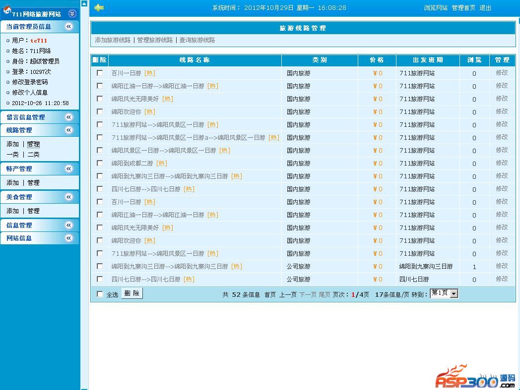 711旅游网站管理系统V12.9 正式版后台的路径为:http://网站域名/admin