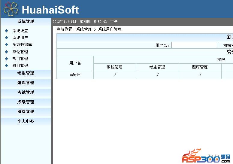 huahaisoft考试系统包含题目管理、批量导入、试卷管理、客观题阅卷、专业管理、班级管理、学生管理、简单的考试新闻……等功能。