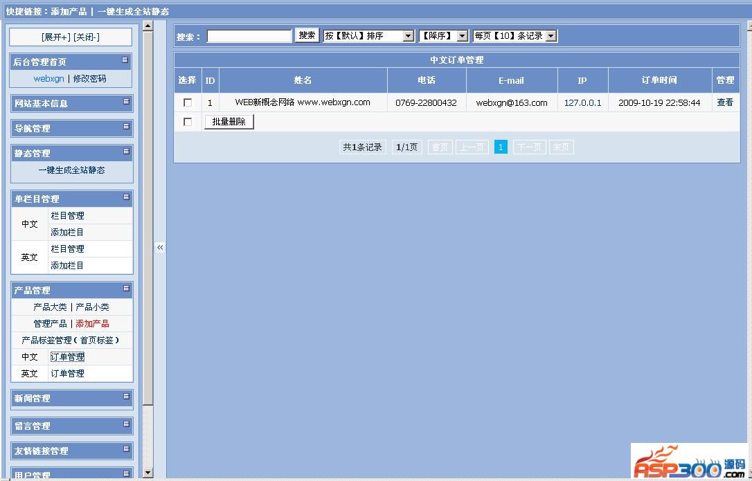 13,产品订单记录到后台并自动发送通知邮件到管理员邮箱,省去经常登录后台查看烦恼,不再丢单,提升客户满意度,记录客户IP地址,了解客人所处国家地区