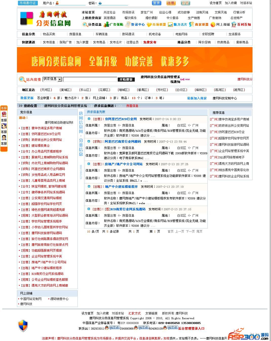 唐网科技分类信息网站管理系统,本分类信网程序基于ASP+Access技术开发的分类信息程序,此程序适用于各种服务器环境:安全、稳定、快速、强大、高效、易用、优秀的网站建设解决方案。采用人性化的Windows操作方式开发,运行速度快,服务器资源占用更少;无论在稳定性、负载能力、安全等方面都有可靠的保证并赢得了广大用户的良好称赞。功能介绍:一个功能强大的分类信息(广告)系统,支持自定义分类信息类别,整个网站风格简单明了,界面美观大方,提高网络推广效果,是国内互联网上不可多得的优秀程序。后台批量管理分类等所有信息。此程序适用于:分类网站网,信息港,分类信息程序,php分类信息程序,免费分类信息程序,asp分类信息程序,分类信息程序下载,分类信息网源程序,海洋分类信息程序,分类信息开源程序,分类信息发布源程序,分类信息网下载,免费分类信息网源码,分类信息源码,分类信息网站源码,ASP分类信息网源码,北京分类信息网,中国分类信息网,上海分类信息网,武汉分类信息网,郑州分类信息网,苏州分类信息网,海洋分类信息网,成都分类信息网,内蒙古分类信息网,济南分类信息网等.