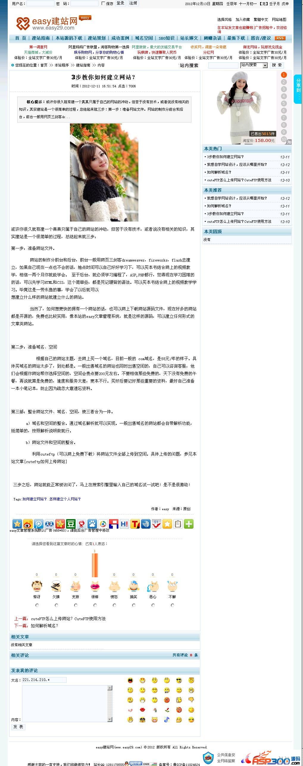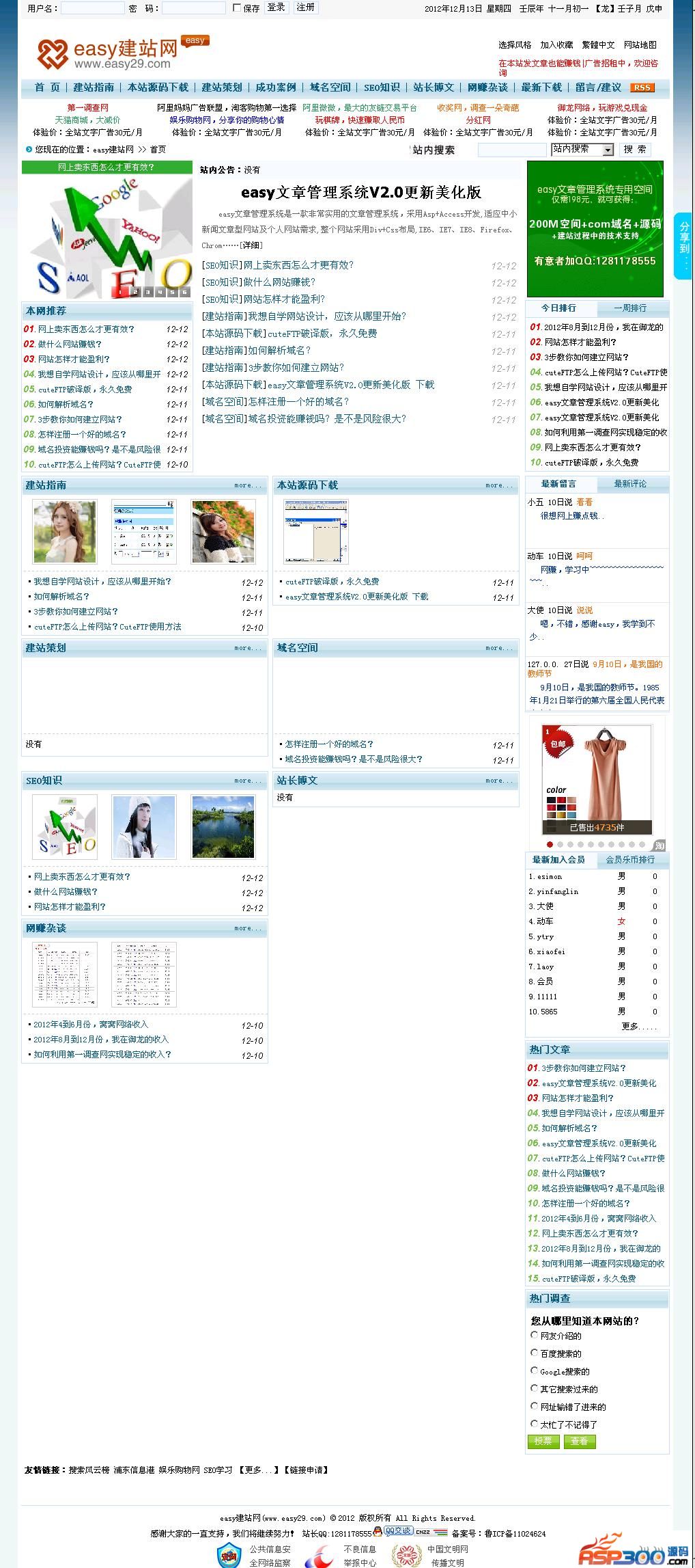 easy文章管理系统采用Asp+Access开发,适应中小新闻文章型网站及个人网站需求,整个网站采用Div+Css布局,IE6、IE7、IE8、Firefox、Chrome下测试无误。