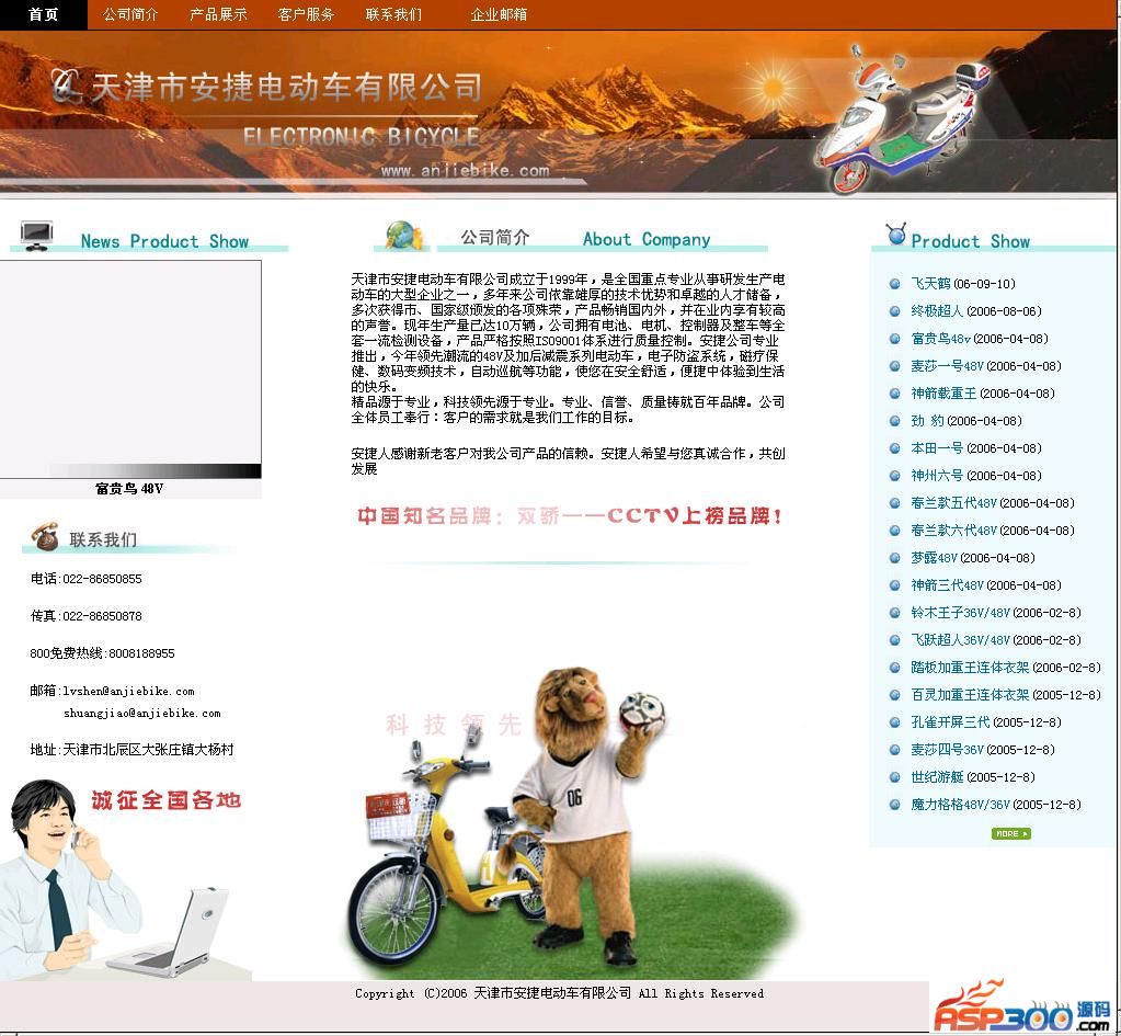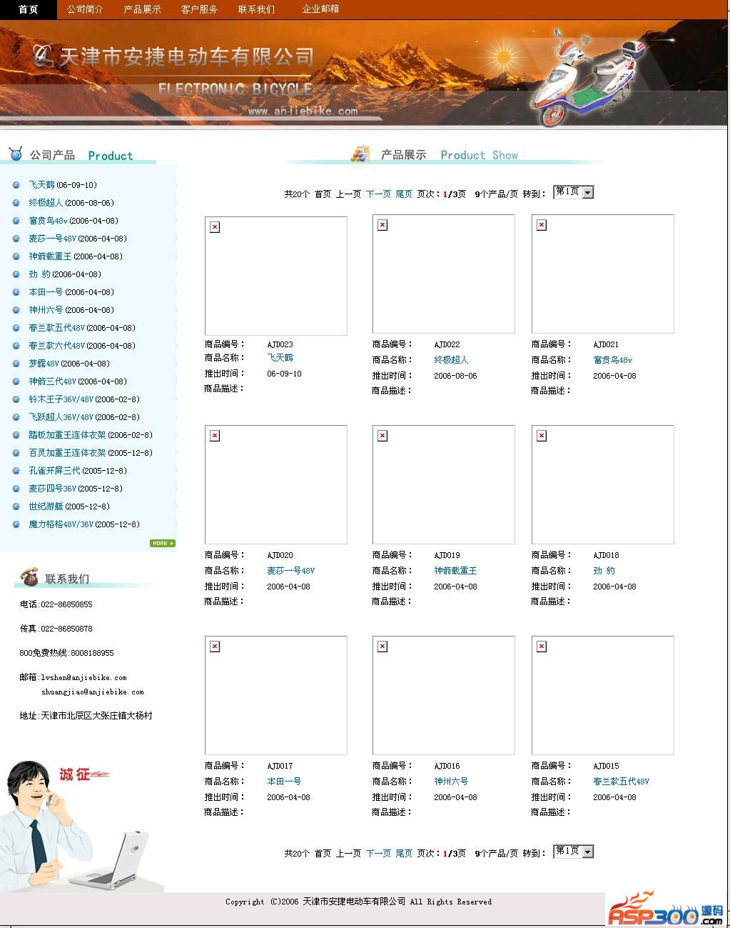 安捷电动车公司网站源码,简单的后台管理功能,可在线发布产品,添加管理员。易于操作管理,适合用于企业建站之用。