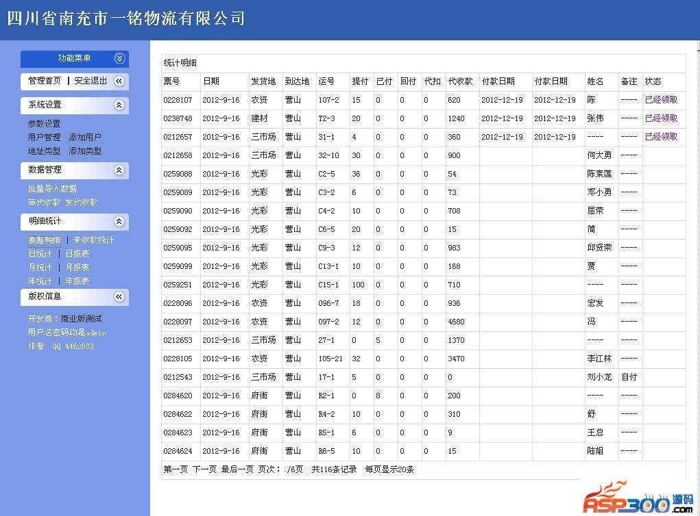 中小型物流公司管理代收货款,批量录入票据、批量审核票据、批量发放代收货款、统计查询、报表查询。