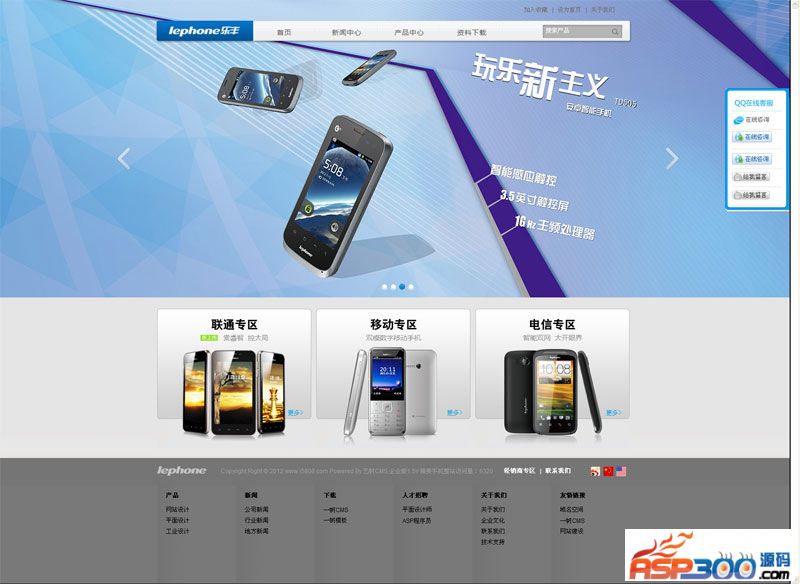 描述:全景大幻灯,蓝色 莹白设计作为主色调,大气简洁,