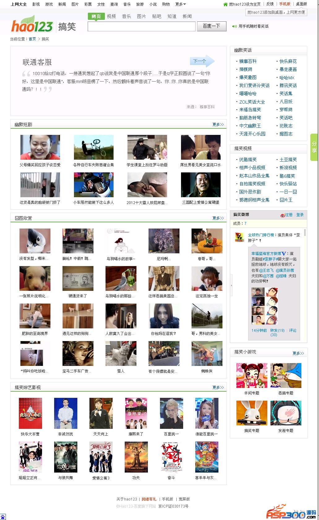 仿hao123.com搞笑频道,每次打开页面或者刷新一次页面,即可自动更换一篇笑话,非小偷采集,本地数据库自带笑话50000篇。 下载地址 下载地址已转移到新版网站,请点击左上角-首页,在新版网站搜索此套源码的标题进行下载。