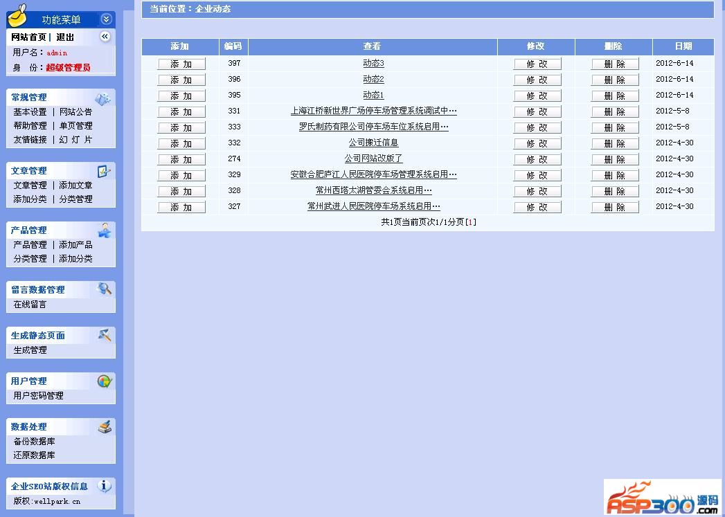 11.生成静态网页栏,建议用“生成管理”中的分项生成。后期的新闻更新,只要