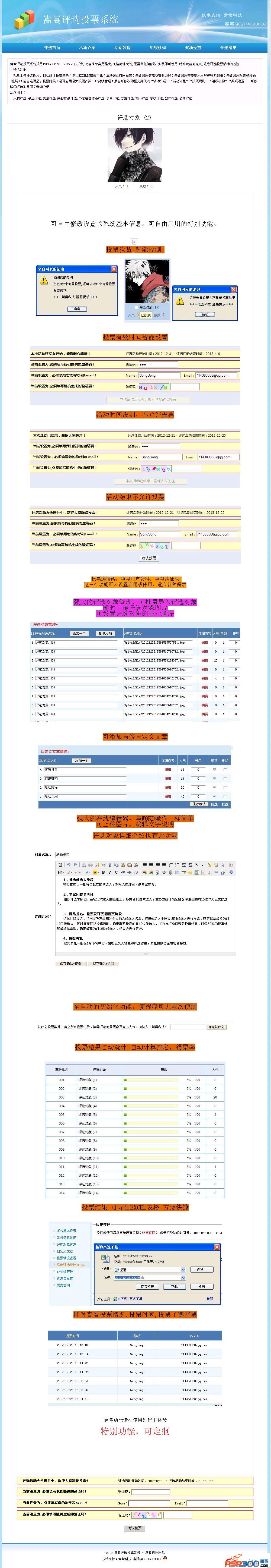 后台可修改的图文并茂的“活动介绍”“活动流程”“投票规则”“组织机构”“奖项设置”;