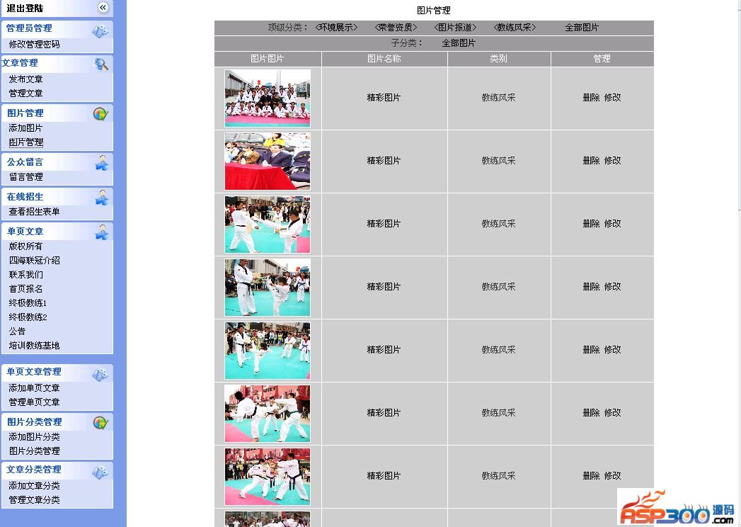 精品跆拳道培训学校机构网站源代码,基于ASP+ACC开发,简单易用。 后台目录:admin/index.asp 登陆用户名及密码:admin 下载地址 下载地址已转移到新版网站,请点击左上角-首页,在新版网站搜索此套源码的标题进行下载。