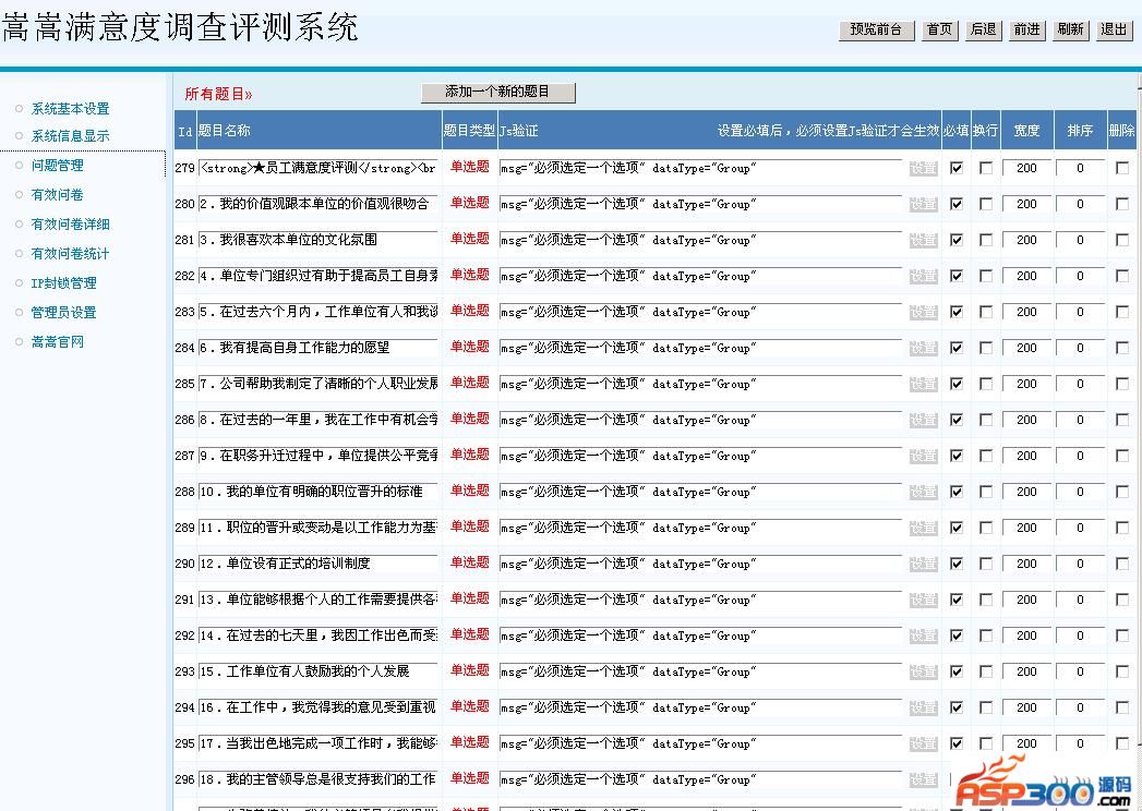 嵩嵩员工满意度调查测评系统,评测内容后台可进行修改。支持添加任意类型的评测项目。只要支持ASP环境,不需任何修改即可运行。