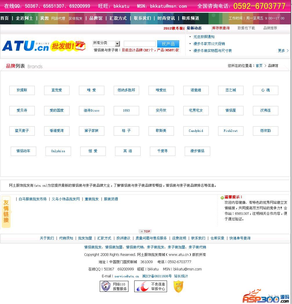 阿土服饰批发商城网(atu.cn)成立于2006年,是国内最专业的情侣装批发、亲子装批发、情侣饰品,网络批发、代销、网店代理,统一代为发货,... 下载地址 下载地址已转移到新版网站,请点击左上角-首页,在新版网站搜索此套源码的标题进行下载。